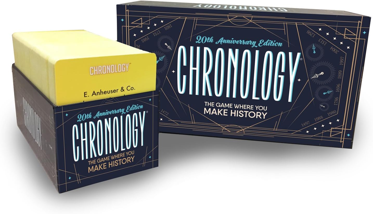 In Chronology, each player builds his or her own timeline of cards. On your turn, someone will read you a historical event from a card. You decide where that event falls in your timeline.